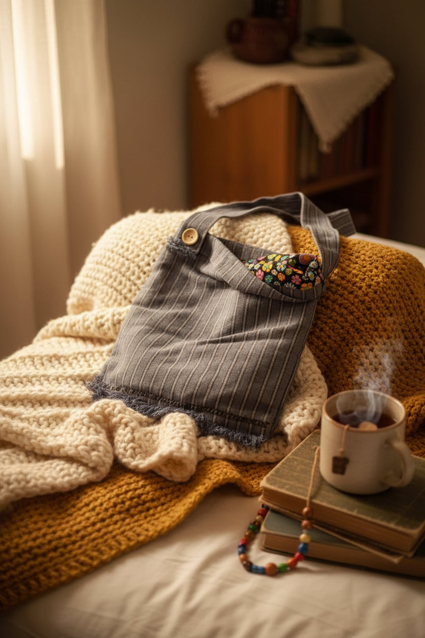 Unique & quirky bags all knitted by Granny Morag using recycled wool.